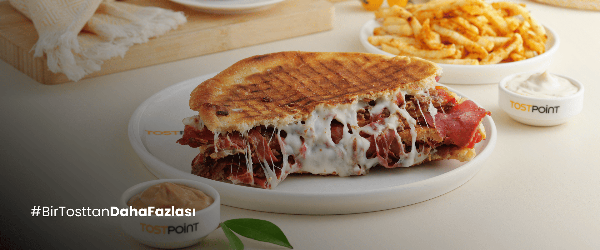 Tost Point’in Türk Tostu, yerli tost kültüründen ilham alıyor ve TostPoint standardıyla yeniden yorumlanıyor. Taze ekmekler, dışı çıtır içi yumuşak şekilde hazırlanıyor.